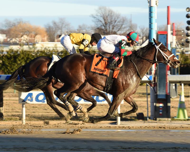 With an honest pace expected in the one-mile at Aqueduct, #5 FIRENZE FIRE should receive the right set-up. Easy to appreciate his game runner-up performance in the 1 1/8-mile Withers (G3) last time but the son of Grade 1-winning sprinter Poseidon’s Warrior has favored one-turn distances, opening 2018 with a rallying victory in the Jerome at Aqueduct and defeating eventual juvenile champion Good Magic in the Champagne (G1) last fall. He registered a 104 BRIS Late Pace rating two starts back and Firenze Fire can prove best in the latter stages.
