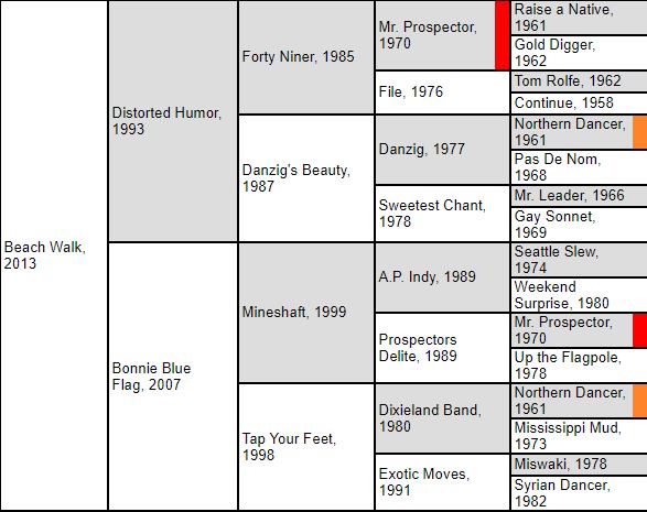 Life Is Good’s dam, Beach Walk, is likewise bred on a Distorted Humor-Slew cross. Her dam is Bonnie Blue Flag, by A. P. Indy’s son Mineshaft, the 2003 Horse of the Year.