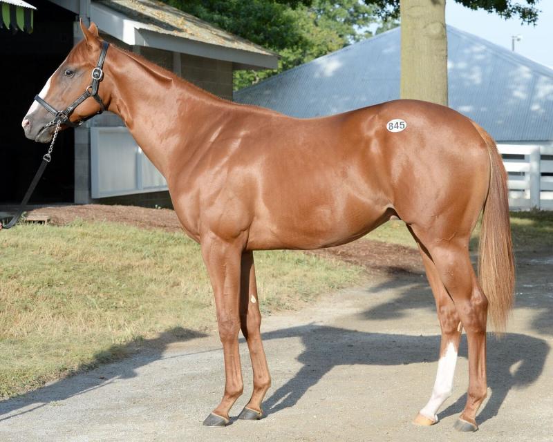 With his appealing profile, the yet-unnamed colt figured to attract plenty of attention at the 2016 Keeneland September Yearling Sale. He duly sparked a flurry of bids culminating in $1 million from Mike Ryan, agent for e Five Racing Thoroughbreds.