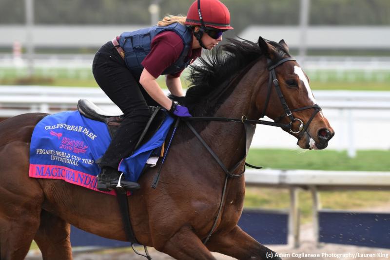 Magic Wand, who is a half-sister to Irish Group 1 heroine and highweight Chicquita, began her four-year-old campaign in the states when contesting the Pegasus World Cup Turf Invitational (G1) versus the boys at Gulfstream Park. In that demanding assignment, the filly tracked the pace and stayed on stubbornly to finish second-best behind the superb Bricks and Mortar.