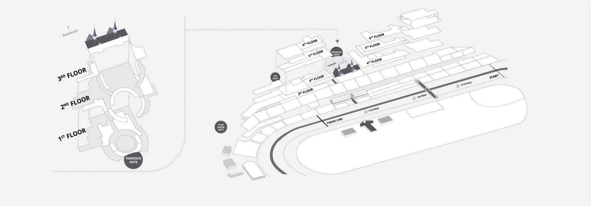 These upscale open-concept suites offer a modern experience for race viewing, and are positioned right at the Starting Gate of the racetrack, elevated above the Grandstand.